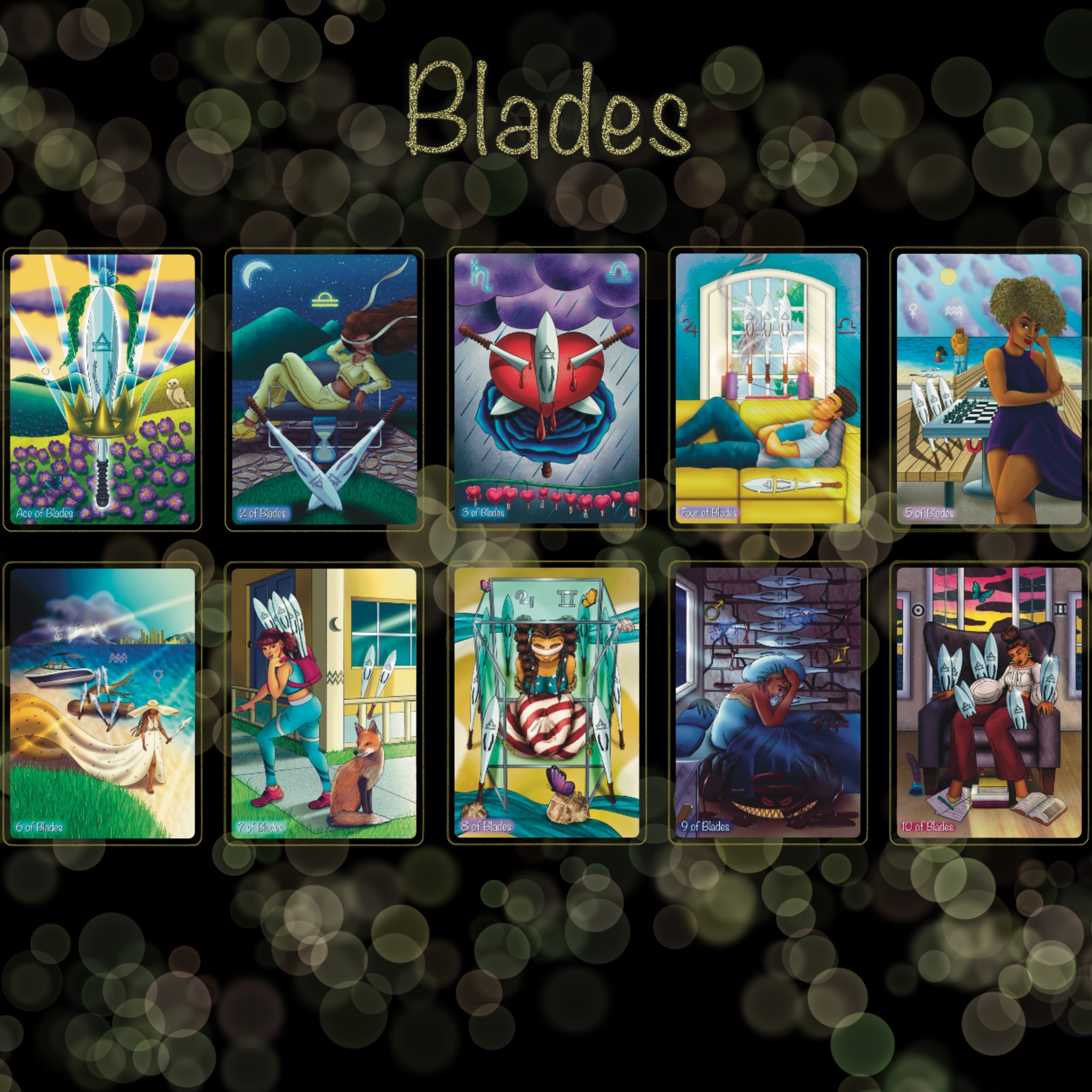 The suit of air, the Blades show words, thoughts, communication, and mental activity.